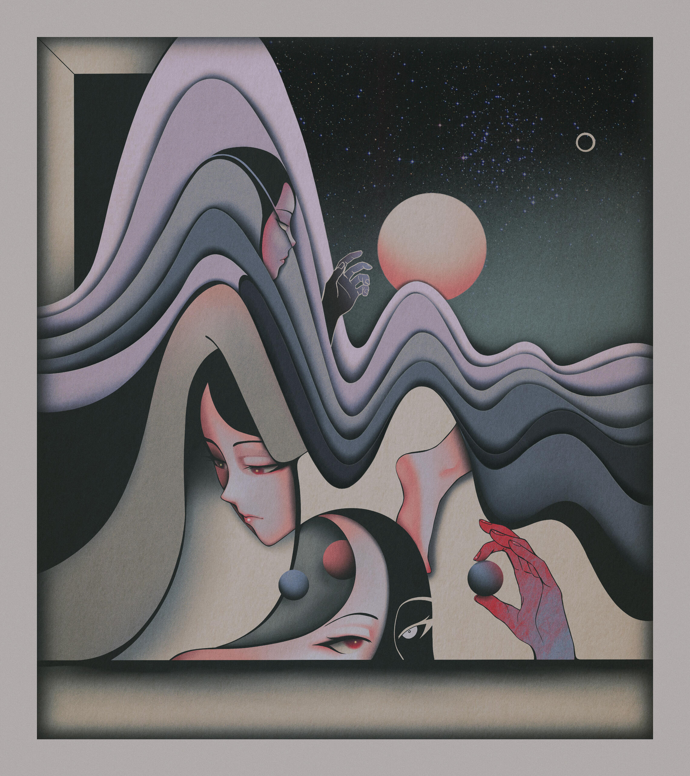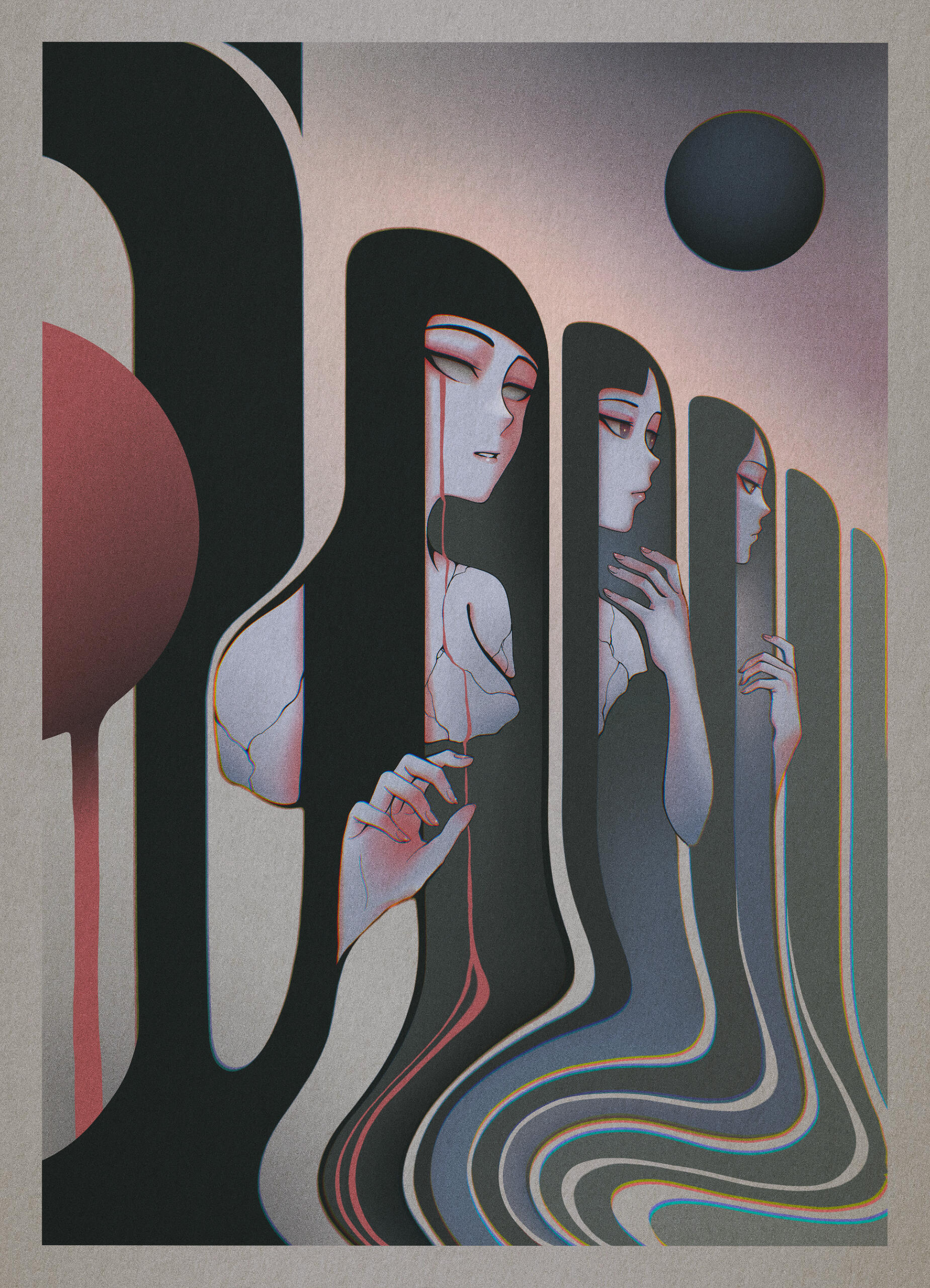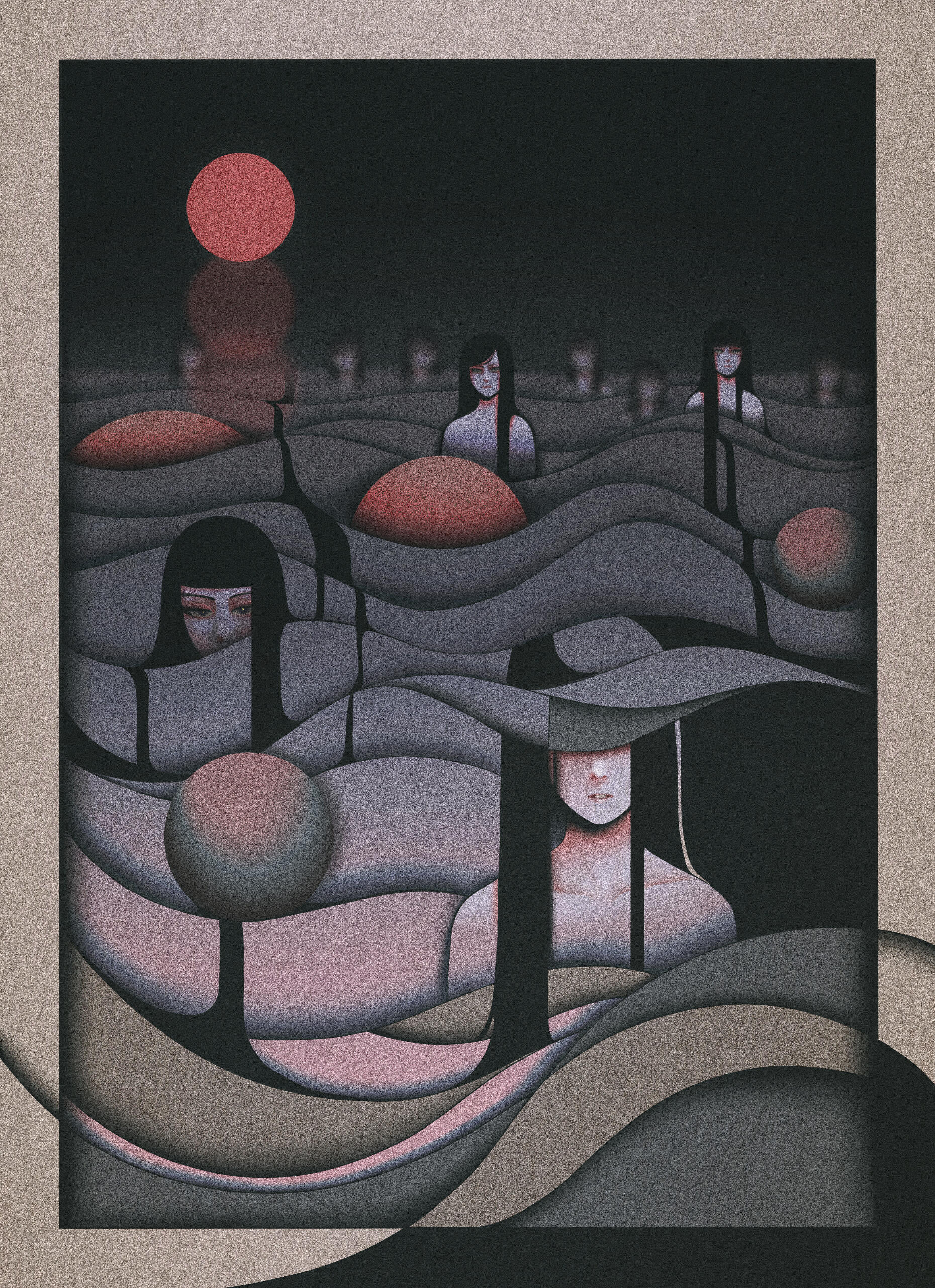 'Curtains' is a collection of 77 hand-made pieces, bound together by their coherent aesthetics and consistent compositions. Their style may be evocative of generative art collections, where a number of parameters are mixed and matched to generate different outputs, and that is on purpose - 'Curtains' was made with gen art as its main inspiration, as a form to consolidate the familiar wave patterns, layered compositions, and color palettes present throughout my work. The collection is composed by seven different palettes (Night, Haze, Garden, Classic, Volcano, Mono, and Neue), three different orientations (Vertical, Horizontal, and Diagonal), and three coloring techniques (Shaded, Flat, and Gradients), mixed and matched to create the many outputs seen below. The variation is enough to make the collection interesting to delve into, without becoming repetitive.